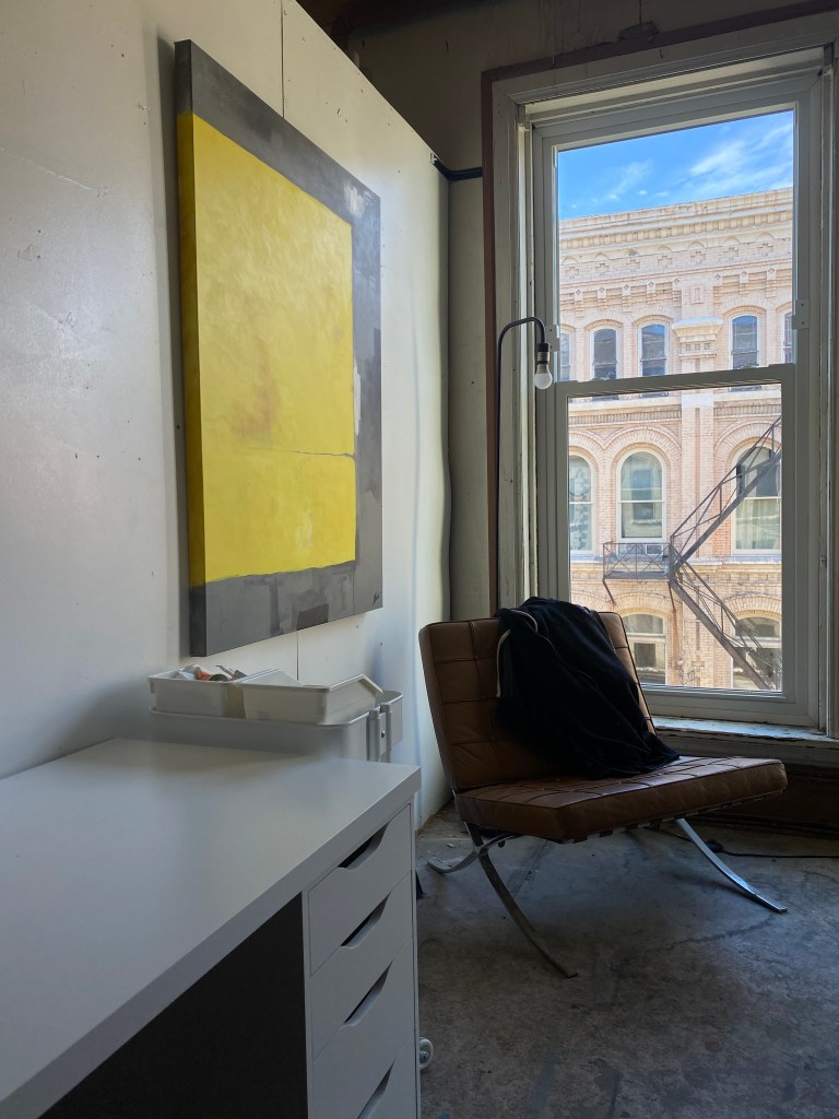 My studio is located in the heart of downtown Winnipeg, in the historic Exchange District. The area is a hub for restaurants, galleries and all things arts related. Some nights the area is full with the hustle and sounds of people moving through the streets and sidewalks. Other nights it is a ghost town. No matter what the mood, I love being perched up on the 4th floor of my building listening, seeing and absorbing all the eclectic energy. It engages my creativity, being in this neighbourhood and I look forward to spending 2022 here in my studio.