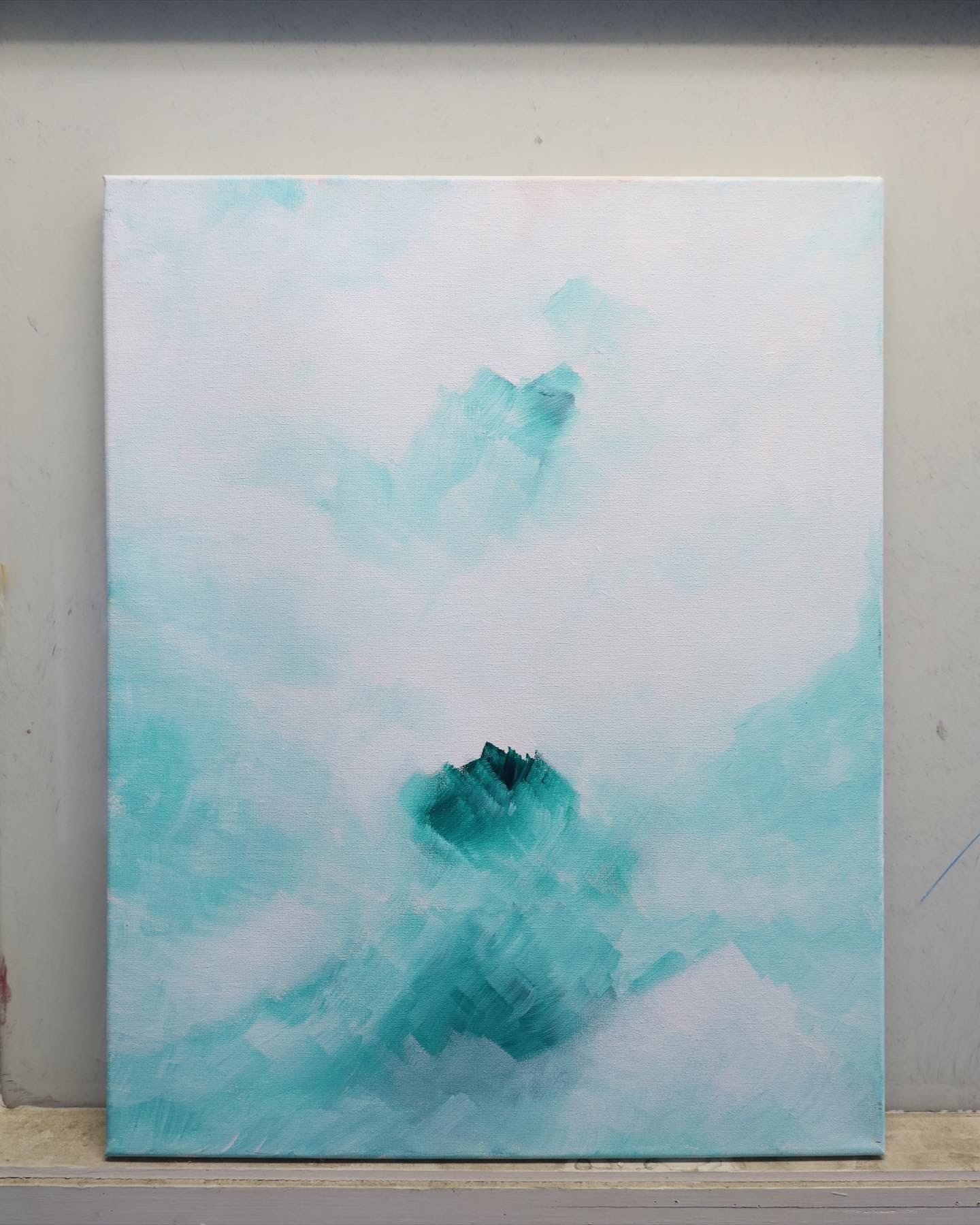 A recent piece in acrylic, “untitled” 18×24. Was really nice to back on a canvas, blending Viridian green and soft white together to create a cool flow of colour and texture.