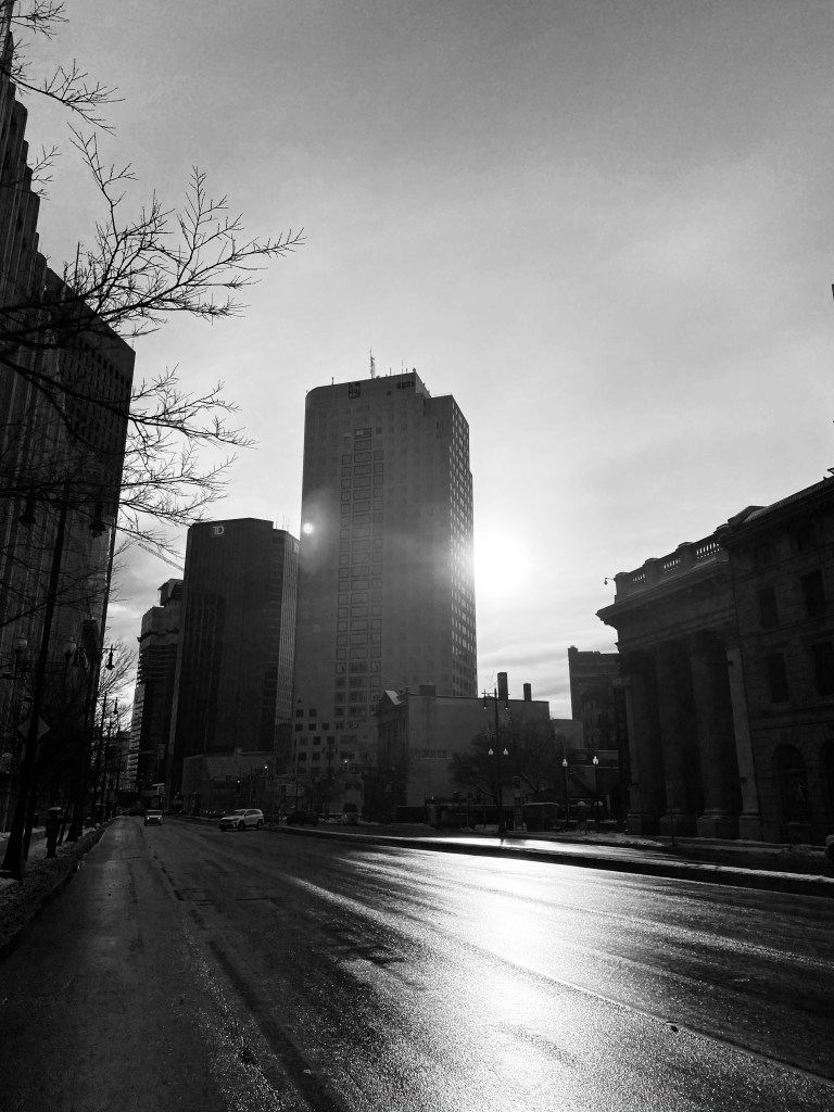 Winnipeg is a place I call home, and always a source of creative inspiration. From the train yards to the city skyline, I am always downtown and walking my familiar routes. I snapped these photos and layered them together, taking what is familiar to me and creating something that is unfamiliar…metal blends into metal and the skyline melts into itself.