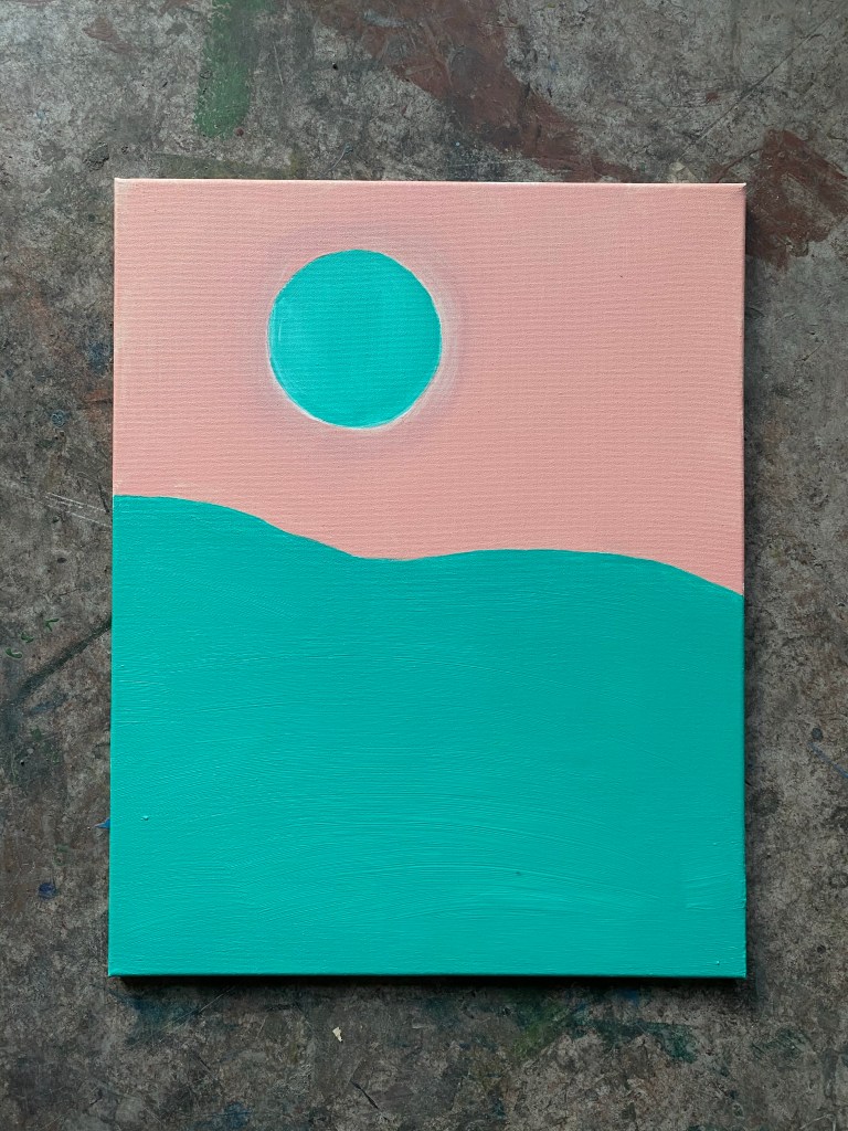 Such a simple colour, but the hue is so nice. I love this pink. I was playing around with portrait pink and aqua green and created this little graphic. 16×20 in acrylic.